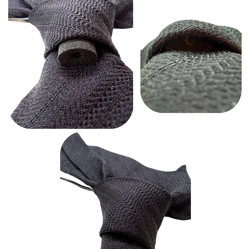 Elle est par ailleurs extensible et peut être coupée : un matériau souple et adaptable qui épouse naturellement la forme du microphone, garantissant un maintien sûr tout en offrant un confort optimal et une isolation phonique parfaite.